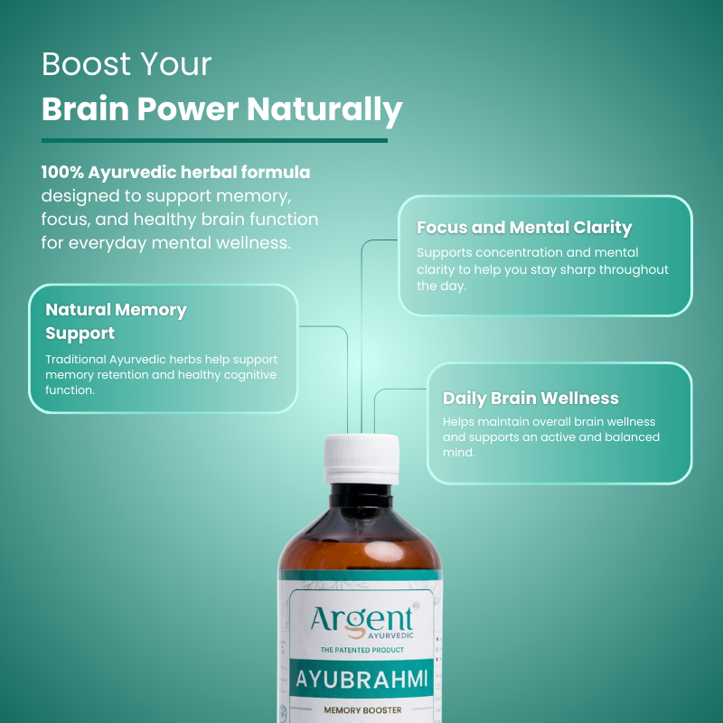 Ayubrahmi is an Ayurvedic brain tonic formulated with Brahmi and supportive herbs to enhance memory, focus, and mental clarity.