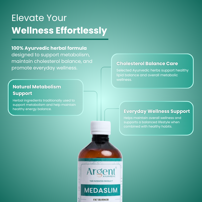 Medaslim is an Ayurvedic weight management tonic formulated to support healthy metabolism and fat balance.